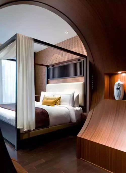 深木色的家具,局部采用一些金色的壁紙、絲綢質(zhì)感的布料,燈光的變化體現(xiàn)了穩(wěn)重及豪華感。