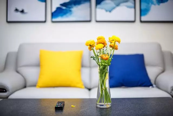 ▲背景墻上的裝飾畫,把自然的舒適放松融入進來,茶幾的植物與沙發(fā)抱枕成呼應性。