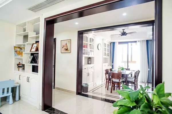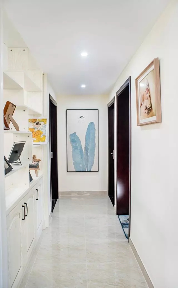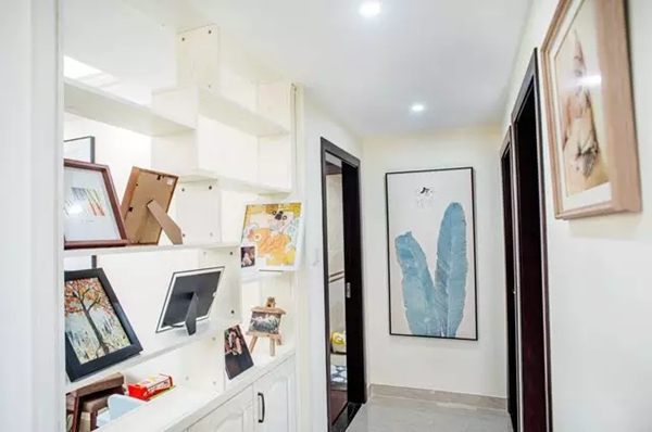 ▲通往臥室的走廊,簡單整潔,旁邊的柜子用于放置相片,讓空間看起來更為豐滿,增添了一絲溫馨。