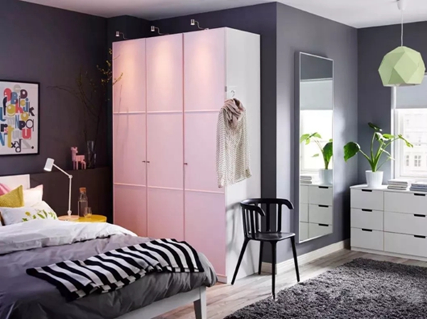對女孩子來說臥室里最想要的大概就是一個可以掛掛掛的衣帽間了!把衣服全部掛起來大概就是女生們最大的夢想之一了。整整齊齊的裙子褲子、分門別類的包包鞋子再加上各種掛飾,一個諾大的全身鏡,好了,簡直就是完美!