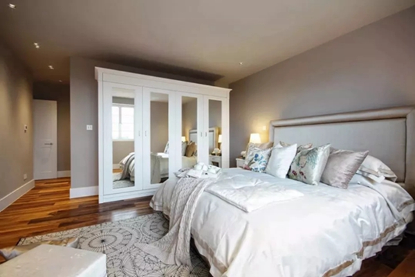 ● 開門受阻 房間小建議用推拉門,雖說推拉門封閉性沒有平開門好,但是不會存在開門受阻的情況。穿衣鏡也可以設計在衣柜上,正面和側面都很常見,節(jié)約空間,使用起來也方便。