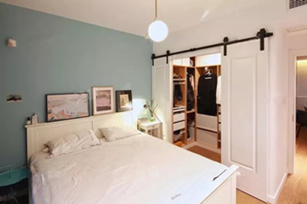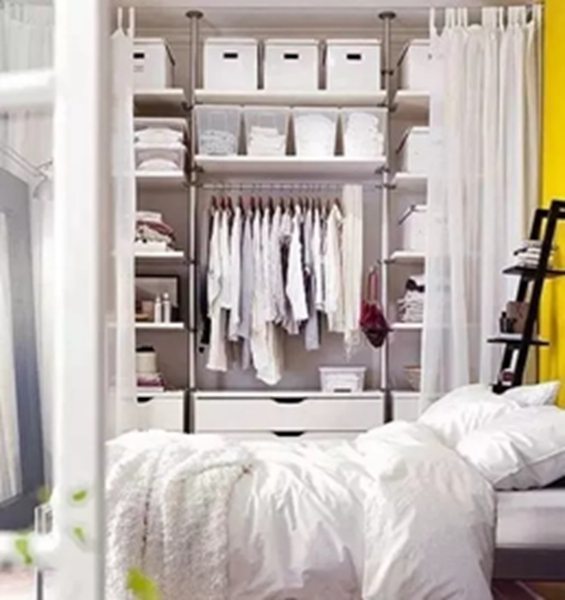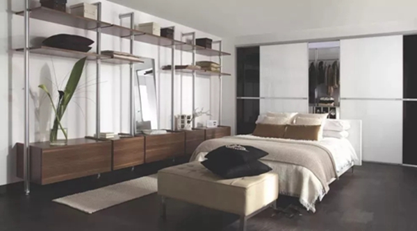 這個時候你可以嘗試一下開放式衣柜,開放式衣柜看似占用空間較大,事實上如果利用墻面打造,可以充分利用臥室的高度,并不會占用多大的地方,還能延伸空間。另外最大的好處就是隔板可以自由拆移,隨時根據(jù)儲物情況進行結構調(diào)整。