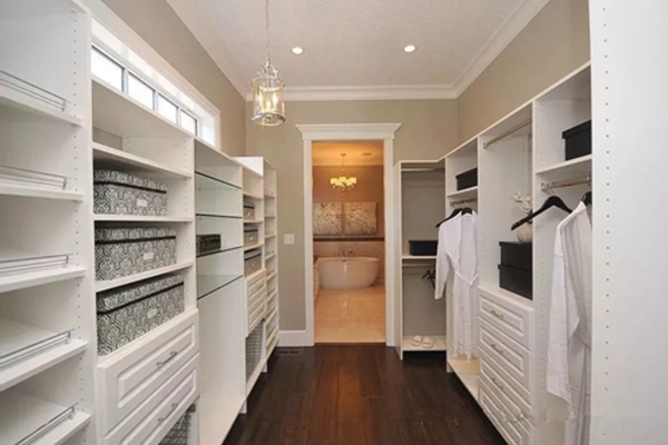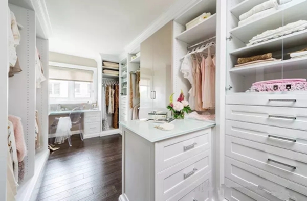 如果家里有一個單獨的空房間或空間(比如:儲物室),那么完全可以利用起來做一個單獨的步入式衣帽間。換季衣物存放、試衣、化妝都可以在這里進行。