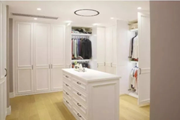 步入式衣帽間裝修技巧: 1.由于走入式衣柜不設柜門,防塵效果會比較差,所以建議可以用布簾進行遮擋; 2.一般步入式衣帽間都是全暗的,所以使用時必須配合燈光; 3.密封空間、空氣流通不好、衣柜板材一定要選好的,不然容易產(chǎn)生異味。