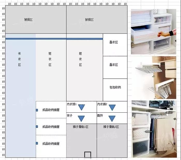 ● 格子過高 很多衣柜格子少,但是卻做的非常高,收納空間是有的,但是很不方便,衣服堆得越高,越不好拿,如果要取最下面的衣服,那上面的那一摞很容易塌掉,重新疊。