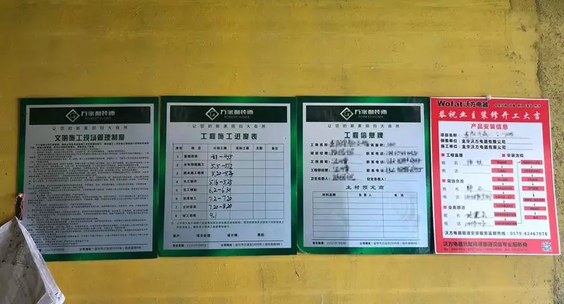 每個工地都配備進(jìn)度表和信息表, 確保業(yè)主能夠了解進(jìn)度、及時和施工人員溝通。