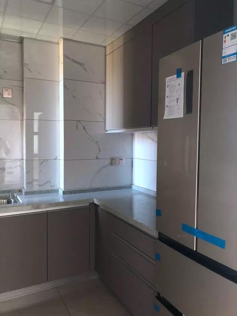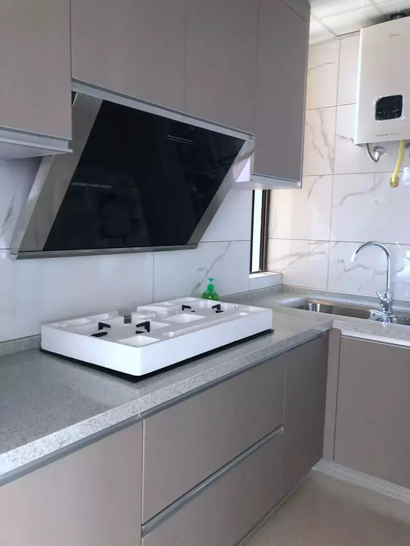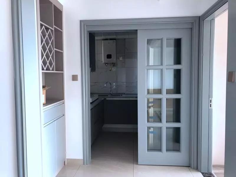 廚房推拉門與整體色調(diào)一致,櫥柜和家電色調(diào)也達(dá)到一致,偏灰色與墻磚搭配看起來干凈利落。