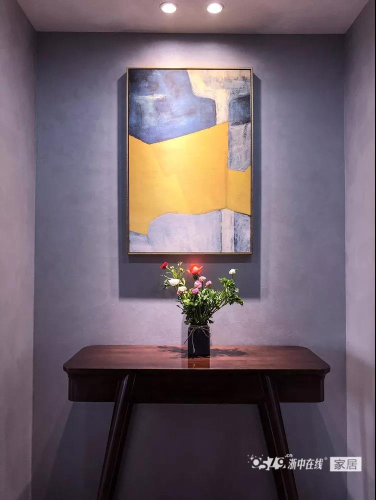 玄 關(guān) 淺棕色的玄關(guān)柜以及幾何圖案掛畫簡單地修飾,鮮花的搭配給入戶空間注入了一絲生機(jī)和活力!