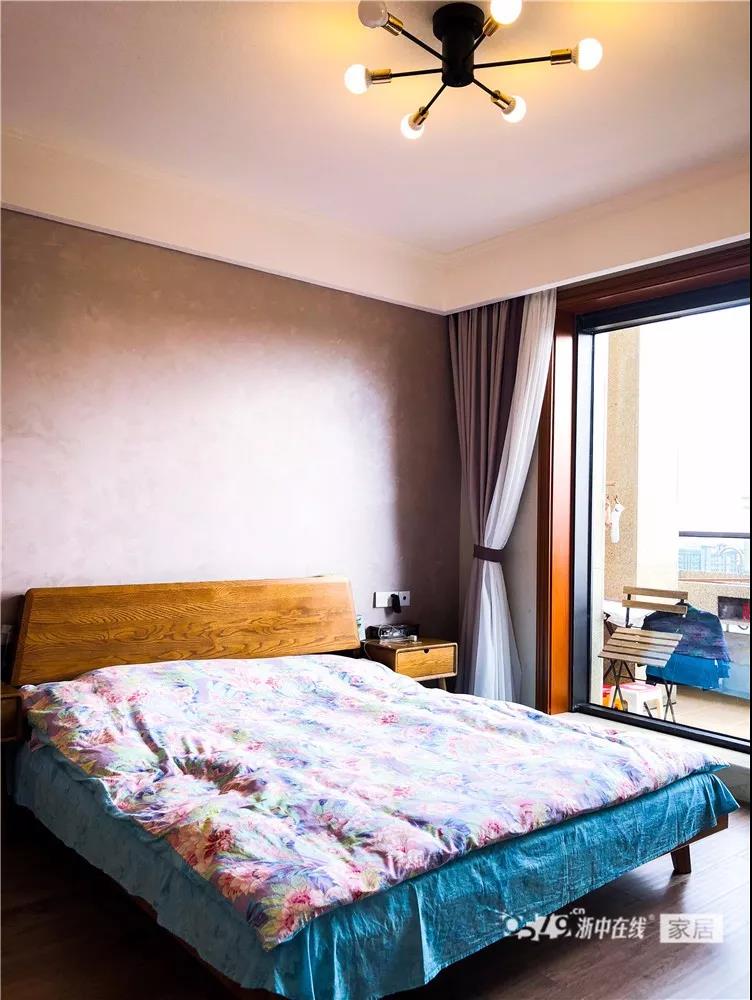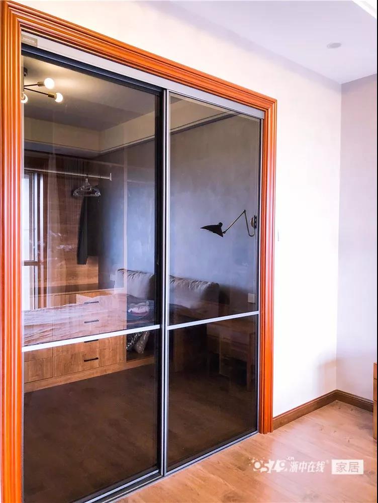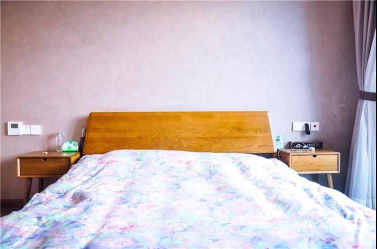 一個(gè)擁有超大衣帽間的臥室,真的是超幸福的,復(fù)古的臺(tái)燈搭配原木色的家具、深色的床品,素雅不失溫馨。