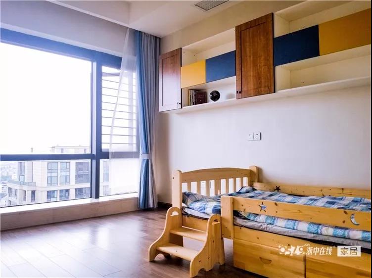 由于小朋友還小目前還沒有獨(dú)立居住,兒童房只簡單的做了墻柜放了張床,落地窗的設(shè)計(jì)使陽光充分進(jìn)入室內(nèi)。