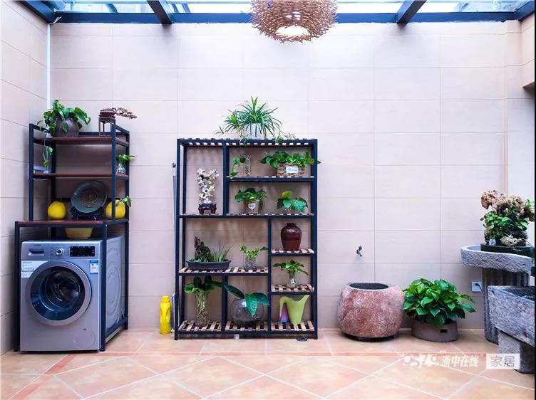 二樓這個(gè)大的露臺(tái)空間承載了洗衣陽臺(tái)、茶室、小花園等諸多功能,用男主人的話說就是約上三五兄弟一起煮茶聊人生的空間。
