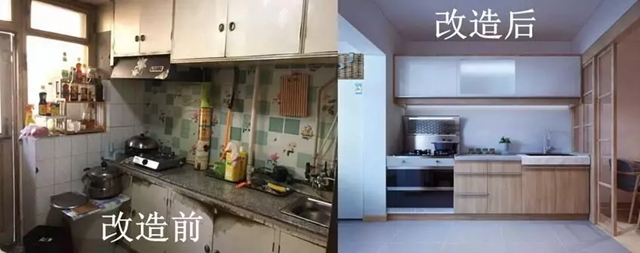 家里這么翻新一下 果然立馬就不同了 瞬間感覺(jué)像換了一套房子 接下來(lái)就帶大家 看幾組改造前后的對(duì)比照 ↓↓↓ 廚房是改造的重中之重 ▼