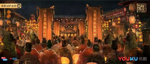 從布景到色調(diào), 觀眾都能將大唐時(shí)代長(zhǎng)安的熱鬧繁華盡收眼底。 分鏡、建筑、服飾妝容自不必說(shuō), 單說(shuō)油畫(huà)般的美術(shù)場(chǎng)景設(shè)定, 就讓人目不暇接、沉迷不已, 完全是一次色彩的勝利。
