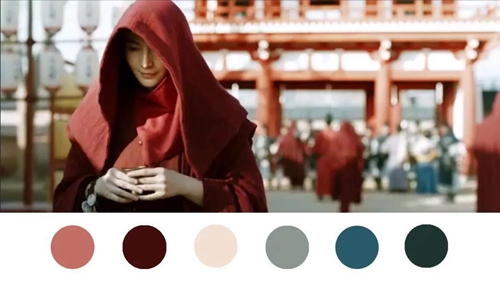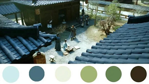 劇中大量使用了冷暖色的色調(diào)對(duì)比,整體的畫(huà)面飽和度較低,有一種高級(jí)藍(lán)的感覺(jué); 顏色搭配既有中國(guó)傳統(tǒng)風(fēng)格的艷色,又有西方高級(jí)的莫蘭迪色,明度統(tǒng)一,讓畫(huà)面色彩方面看起來(lái)特別干凈舒適、清新淡雅。