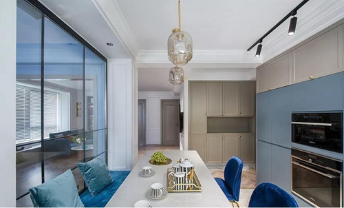 在家居配色中,藍(lán)色系也是非常耐看的顏色,可以讓整個(gè)家看起來(lái)更高級(jí)。
