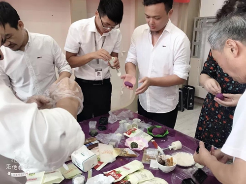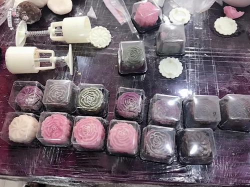 從包月餅餡再到用模具做出月餅, 小伙伴們?nèi)唷、團(tuán),熱火朝天地開始做著, 一個(gè)個(gè)高顏值的冰皮月餅就做好了。
