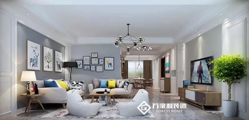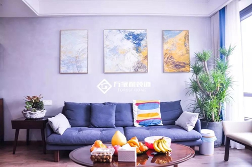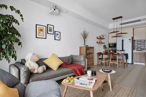 原木色系穿插在家中的各個角落,深灰色系布藝沙發(fā)搭配裝飾畫塑造和諧統(tǒng)一感。