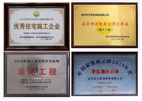 “行業(yè)貢獻(xiàn)優(yōu)秀企業(yè)”、“金華市老百姓滿意的裝修單位”等多項(xiàng)殊榮,