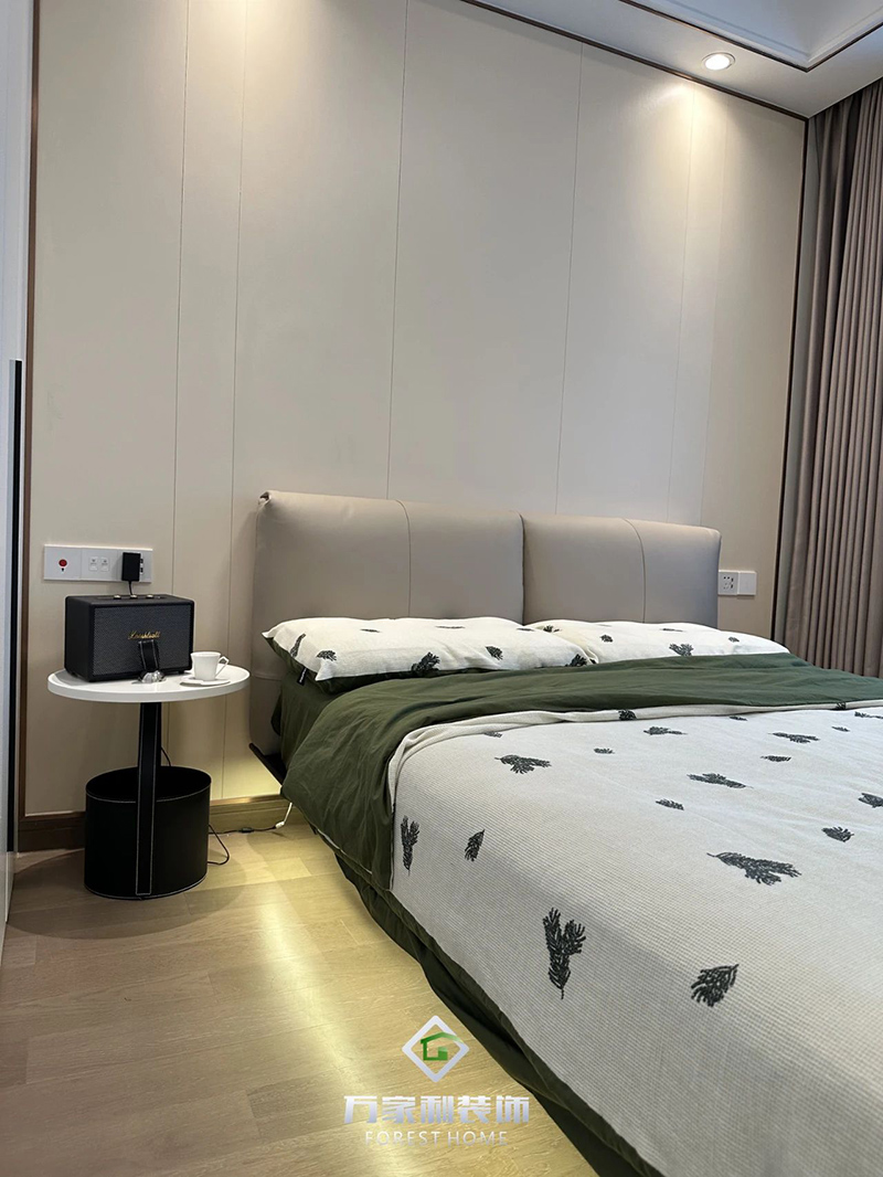 臥室墻面不宜太復(fù)雜,簡(jiǎn)單的線條搭配燈帶的融入,達(dá)到配置上的精致實(shí)用。詮釋出簡(jiǎn)約、靜謐、舒適的生活情調(diào)。柔和的色彩,與硬朗的燈飾相碰撞,彰顯輕奢質(zhì)感,塑造精致生活。
