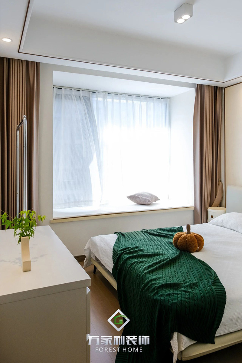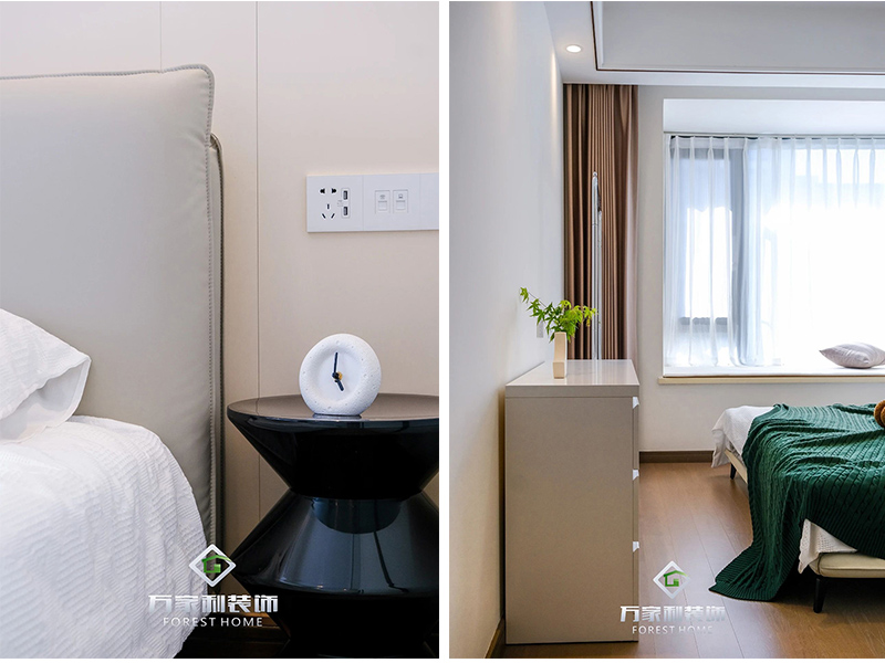 白色和綠色床尾巾交相呼應(yīng),賦予主臥空間高貴典雅的氣質(zhì)。