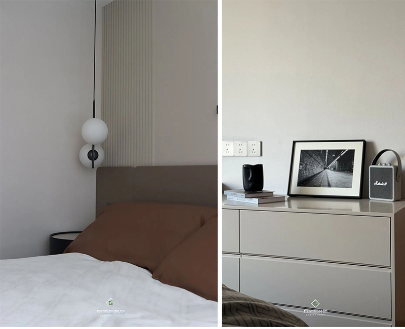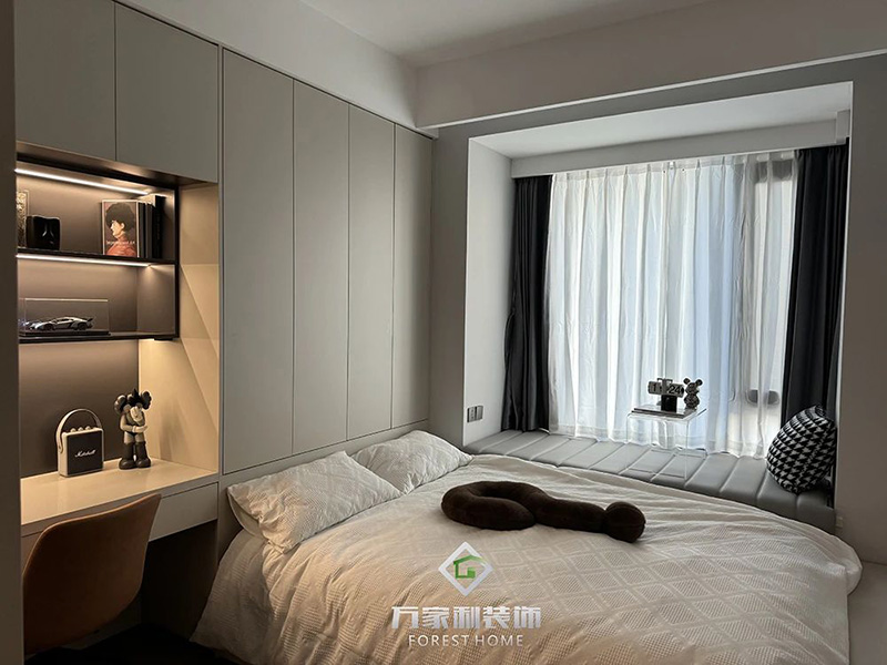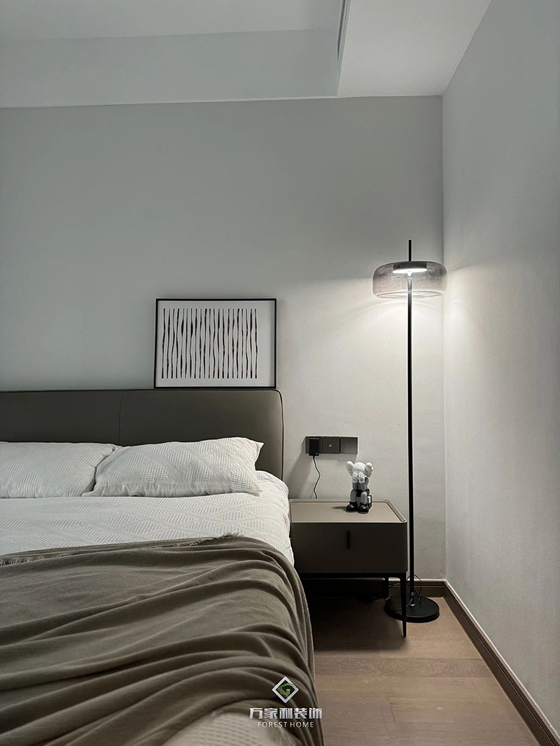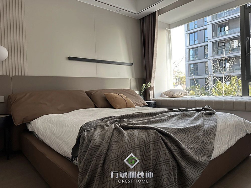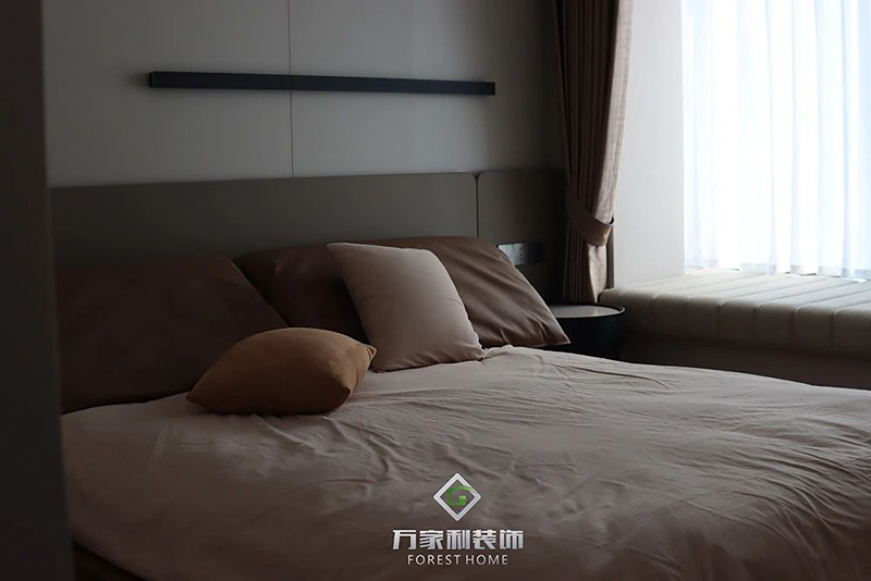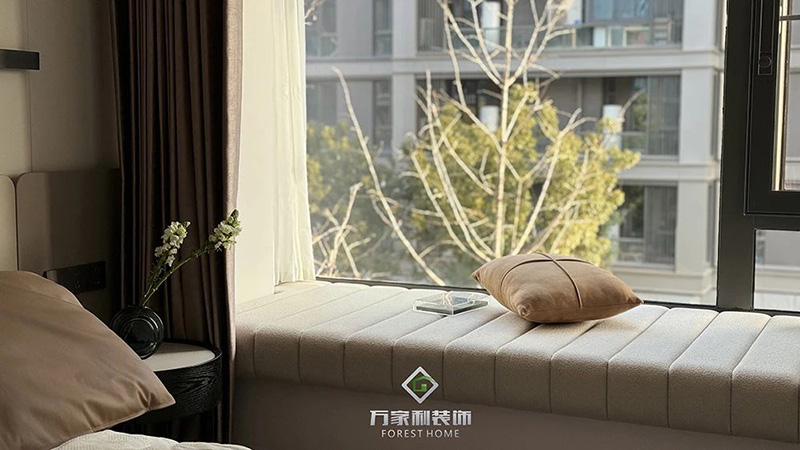 主臥延續(xù)了客廳的裝修風(fēng)格,搭配精致的細(xì)節(jié),展現(xiàn)出低調(diào)的奢華,飄窗的設(shè)計,無論是閱讀、休息還是享受私人時光,這里都是你最理想的空間。