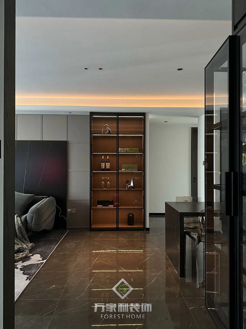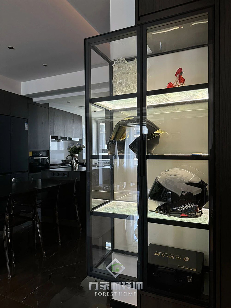 這是一位男士專(zhuān)屬空間,他追求生活的質(zhì)感與情調(diào),享受一杯佳釀帶來(lái)的平靜時(shí)光;他是追逐速度與自由的探索者,摩托車(chē)承載著他對(duì)未知世界的渴望。設(shè)計(jì)師以現(xiàn)代暗黑風(fēng)為基調(diào),打造了一個(gè)充滿(mǎn)個(gè)性與質(zhì)感的家。