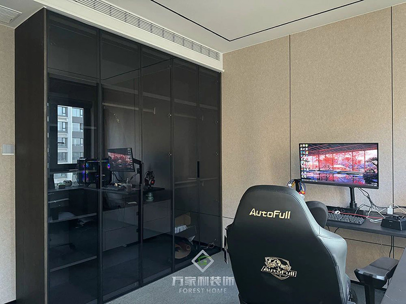 走進(jìn)設(shè)計(jì)師精心打造的電競(jìng)房,仿佛踏入了一個(gè)充滿(mǎn)未來(lái)感的科技世界。舒適的電競(jìng)椅,貼合人體工學(xué)設(shè)計(jì),讓男主人在游戲中盡享絲滑流暢的操作體驗(yàn),釋放壓力。