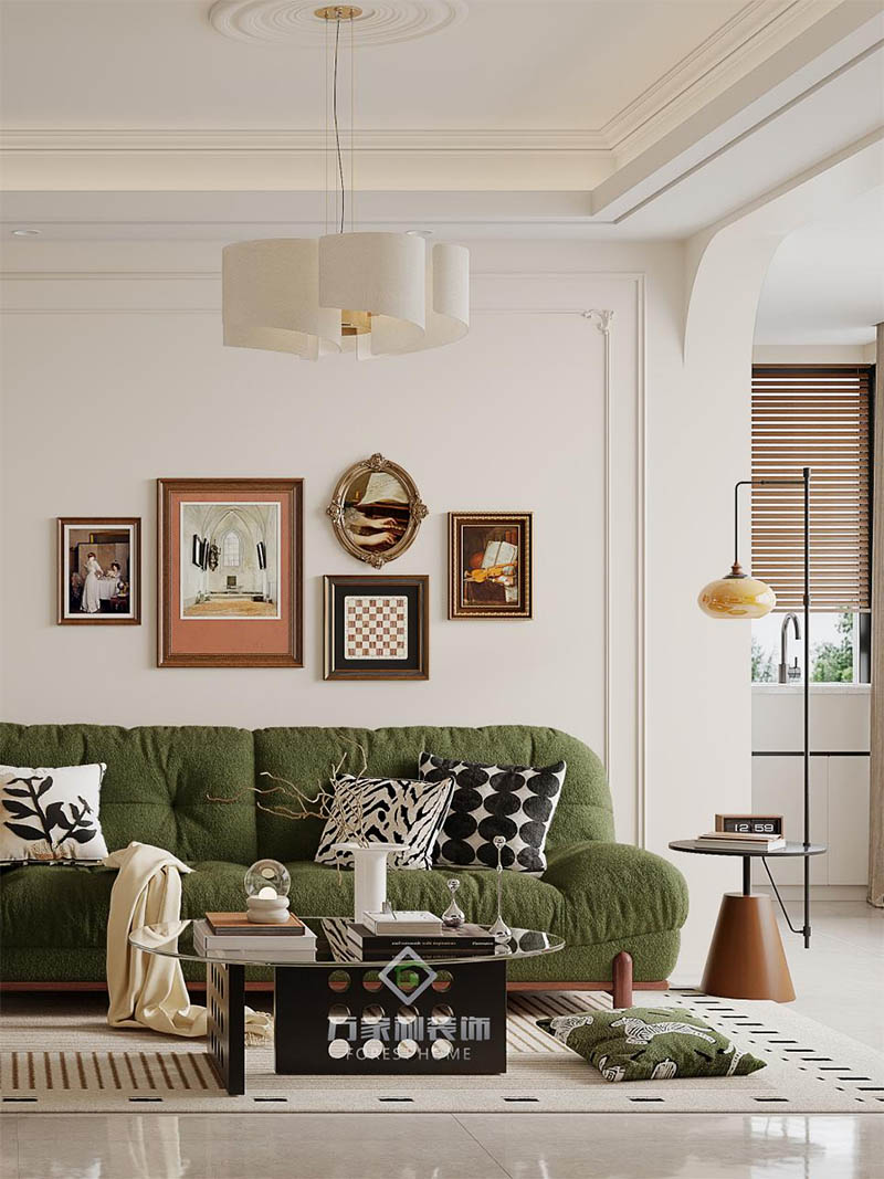 當(dāng)法式復(fù)古風(fēng),遇上一眼心動(dòng)的綠色沙發(fā),像陽(yáng)光透過樹影斑駁的光影讓法式復(fù)古風(fēng)客廳變得很有生機(jī)活力充滿森系的復(fù)古浪漫氛圍.